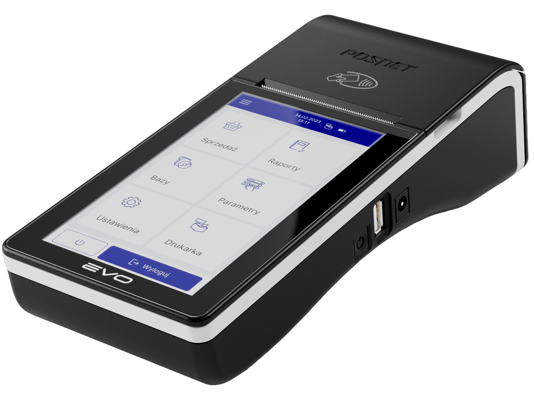 Evo ma funkcje NFC, która pozwala na przyjmowanie płatności bezgotówkowych bezpośrednio na urządzeniu.